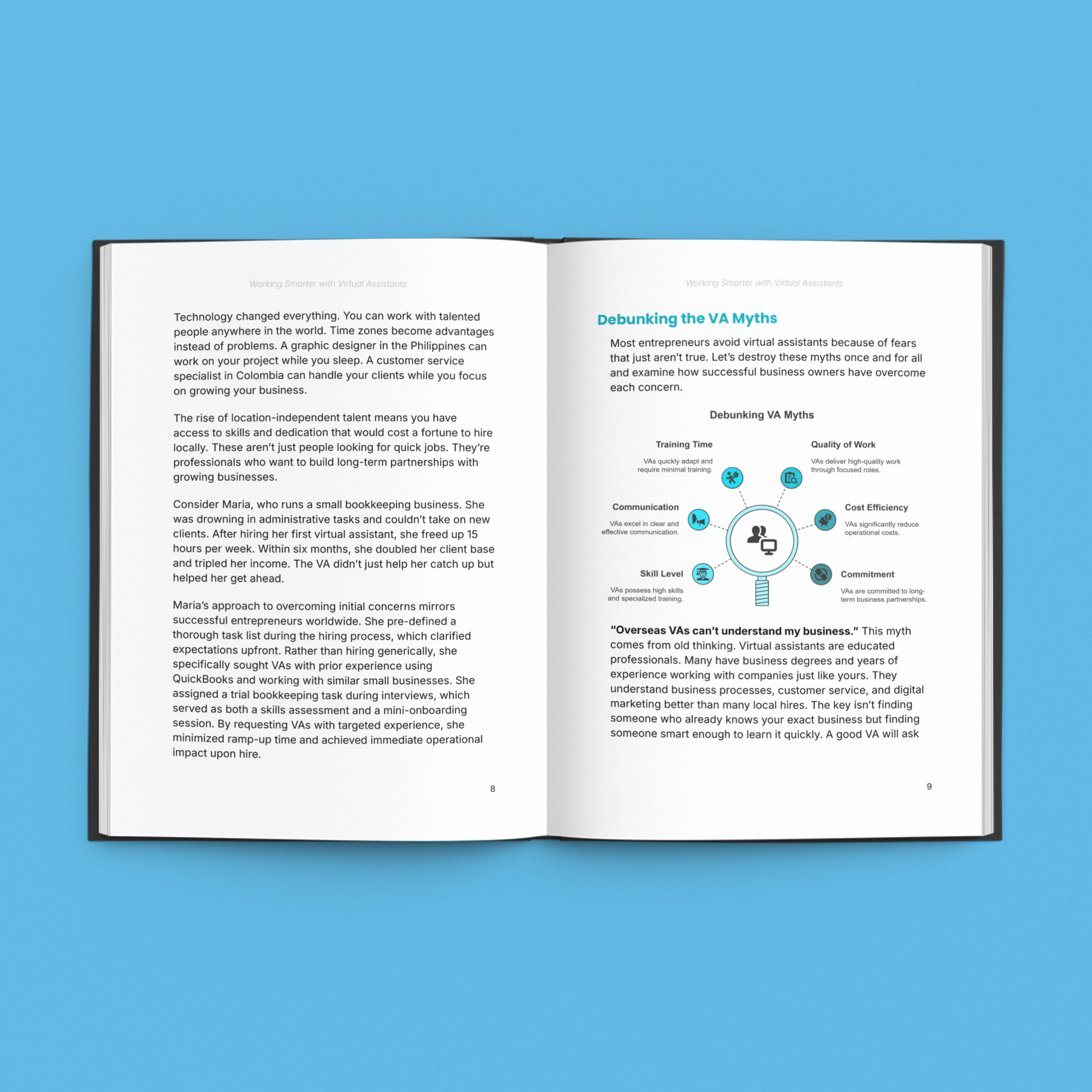 This ebook teaches you how to work smarter by using virtual assistants to handle routine tasks, streamline operations, and free up your focus for growth. It provides clear, actionable guidance on hiring, onboarding, and managing VAs effectively—so you can build a reliable support system that scales with your business.